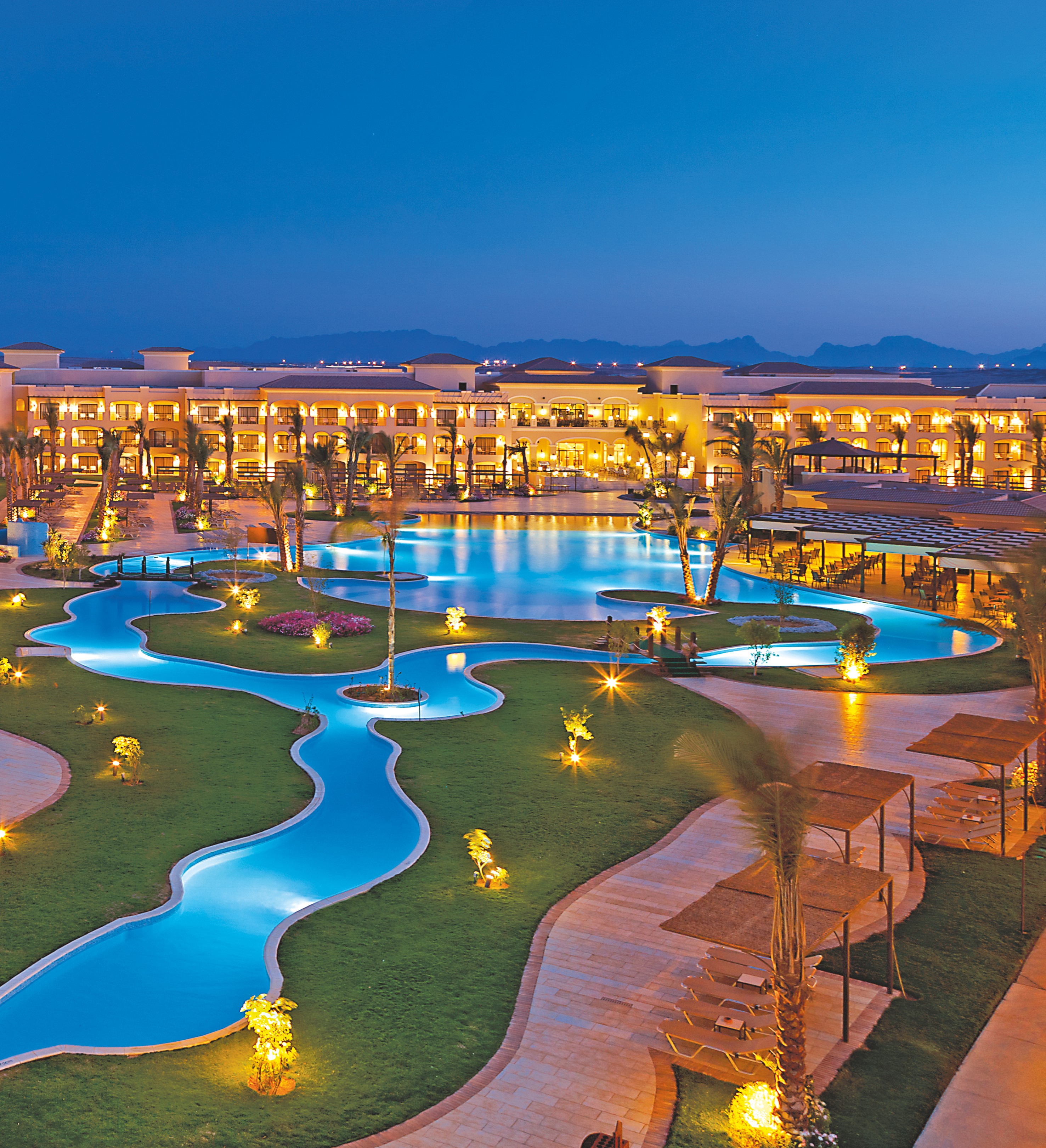 L’hôtel Jaz Bluemarine ***** convient parfaitement aux familles qui veulent s’amuser dans l’eau sous le soleil égyptien. Il compte deux parcs aquatiques avec des toboggans à sensations fortes. Le Jaz Bluemarine abrite aussi des coins plus calmes, comme le bain à remous sur la plage avec vue sur la mer ou les deux baies bordant l’hôtel.