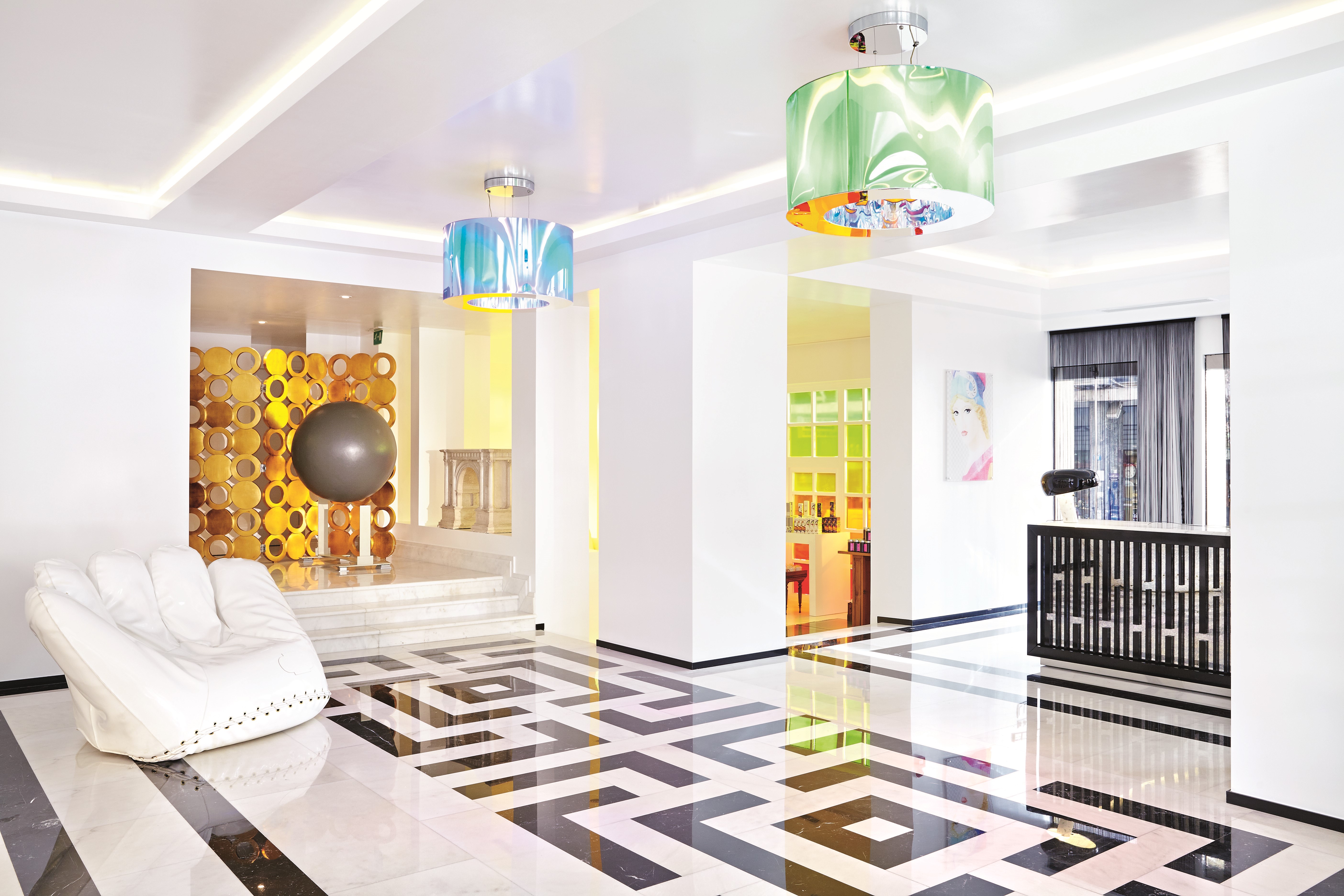 L’hôtel Le Grecotel Pallas Athena est un hôtel-boutique aménagé de manière unique, avec beaucoup de détails artistiques. Déjà à l’arrivée dans le hall, vous en prenez plein les yeux. Partout où vous regardez, vous découvrez de l’art moderne, et derrière chaque coin se cache un détail créatif. L’hôtel est également souvent hôte à des expositions d’art. L’identité de l’hôtel se retrouve également dans votre assiette, car ici aussi le chef met en avant son style créatif. L’emplacement de l’hôtel L’hôtel est situé à côté de l’hôtel de ville d’Athènes, en plein centre-ville. Il se trouve donc à quelques pas des principales attractions , comme le quartier pittoresque Plaka, la place Syntagma au cœur de l’Athènes moderne et bien entendu l’Acropole mondialement connue. L’hôtel est situé tout près de la station de métro Omonia. Les chambres Les 63 chambres que compte l’hôtel sont toutes décorées de manière individuelle, chacune avec son propre caractère. Elles sont pourvues de climatisation, d’une télévision à écran plat avec chaînes satellites, d’un minibar, d’un sèche-cheveux et de Wi-Fi gratuit . Les familles peuvent réserver des suites spéciales Grafitti qui sont aménagées en tenant compte des enfants. Ainsi, vous dormez dans un chambre entourée de Schtroumfs ou sous un grand champignon. A manger et à boire Dans le restaurant ‘fine dining’ de l’hôtel, vous pouvez savourer des délices gastronomiques grecs et méditerranéens, préparés avec des produits frais originaires de la propre ferme de l’hôtel. A partir de la terrasse du restaurant, vous avez une vue imprenable sur la place Kotzia. Dans le bar-salon, vous pouvez profiter d’un cocktail ainsi que d’une collation.