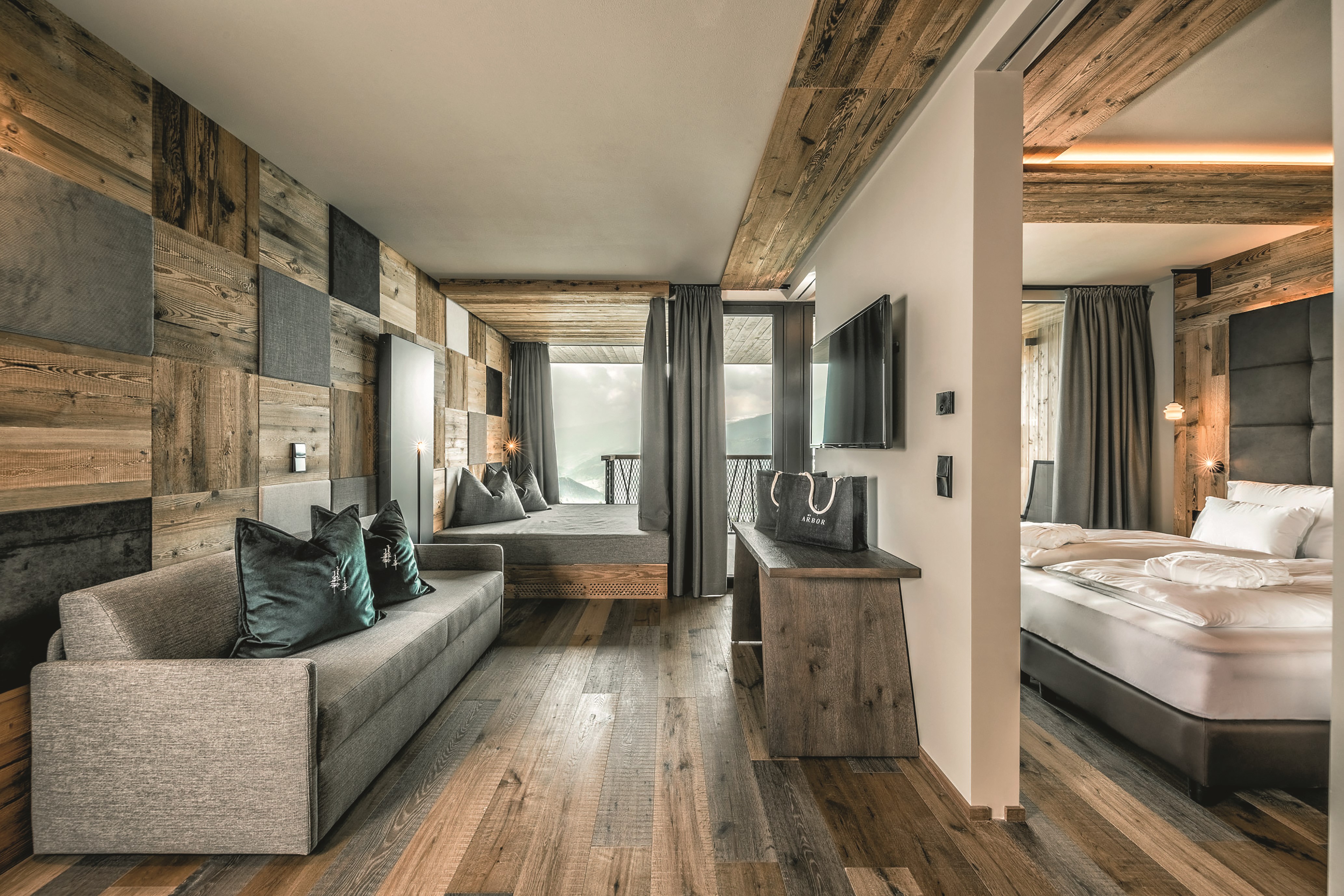 Le TUI BLUE My Arbor est situé dans un cadre idyllique et extrêmement calme, entouré d'arbres et par la vallée de l’Isarco. Les fenêtres panoramiques vous offrent les meilleures vues sur la vallée. L'hôtel est parfaitement intégré dans la nature environnante, avec son style cabane dans les arbres. Vous vous prélasserez volontiers dans les suites, vous pouvez prendre le petit déjeuner jusqu'à midi et profiter en soirée d'un délicieux repas 5 services. Ici, tout est hors du commun.