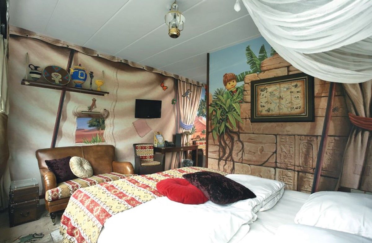 in deze kamer slapen ridders en jonkvrouwen tussen draken, vlaggen en wapenschilden (type 22)