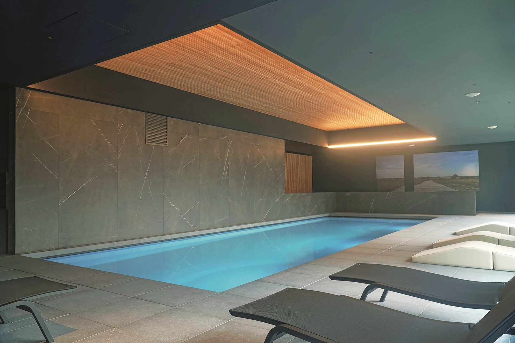 De wellnessruimte met buitenterrassen is een oase van rust van meer dan 120 m². Je kan genieten van het verwarmde binnenzwembad (52 m²), de sauna of ontspannen in de hamam.