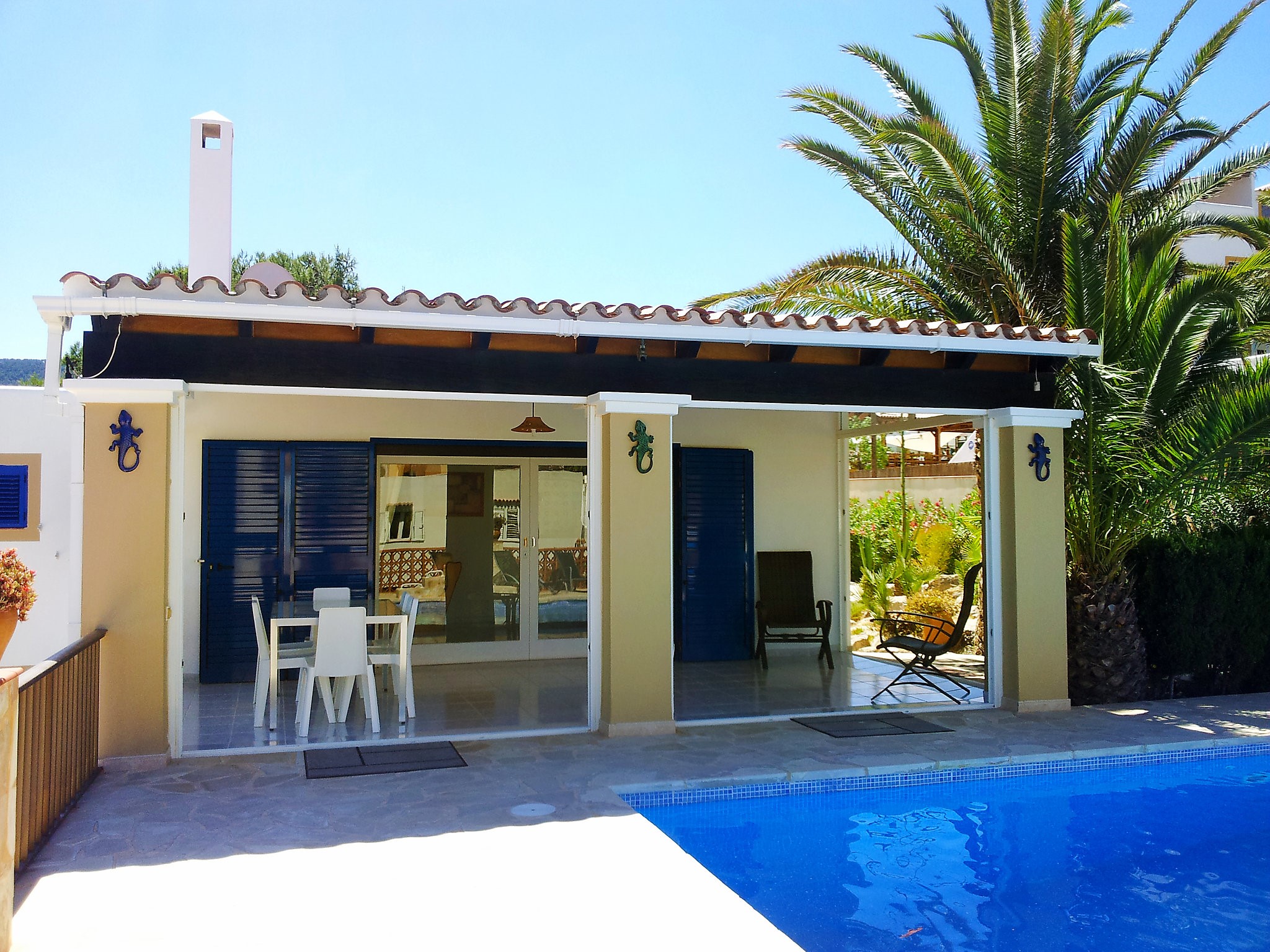 Vakantiewoning Anromi ligt op 1.5 km van de prachtige baai Cala Vadella, een rustige, gezellige baai aan de westkust van Ibiza. Supermarkt, restaurant en bars liggen op wandelafstand en in de ruime omgeving zijn er heel wat mogelijkheden zoals watersporten, excursies met de boot, duiken, zeilen, surfen en tennis. Het uitzichtpunt van Sa Talaia biedt een panoramisch uitzicht over het eiland en Formentera.